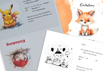 Hier findet ihr Einladungskarten für den Kindergeburtstag zum kostenlosen Ausdrucken. Jedes PDF kann individuell beschriftet werden. Außerdem findet ihr hier Einladungskarten zu unterschiedlichen Themen sowie in den verschiedensten Farben, auch für Druckertinten-Sparfüchse in schwarz-weiß.